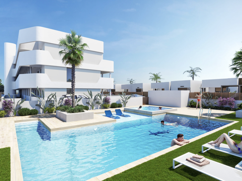 Het complex beschikt over diverse gemeenschappelijke voorzieningen die het wonen verrijken. De groene zones bieden rust en natuur voor wandelingen of ontspanning. Het gemeenschappelijke zwembad is perfect om af te koelen en te socializen, terwijl de gemeenschappelijke garage veiligheid en gemak biedt voor voertuigen. Voor kinderen is er een speeltuin, waar ze veilig kunnen spelen en nieuwe vrienden kunnen maken.