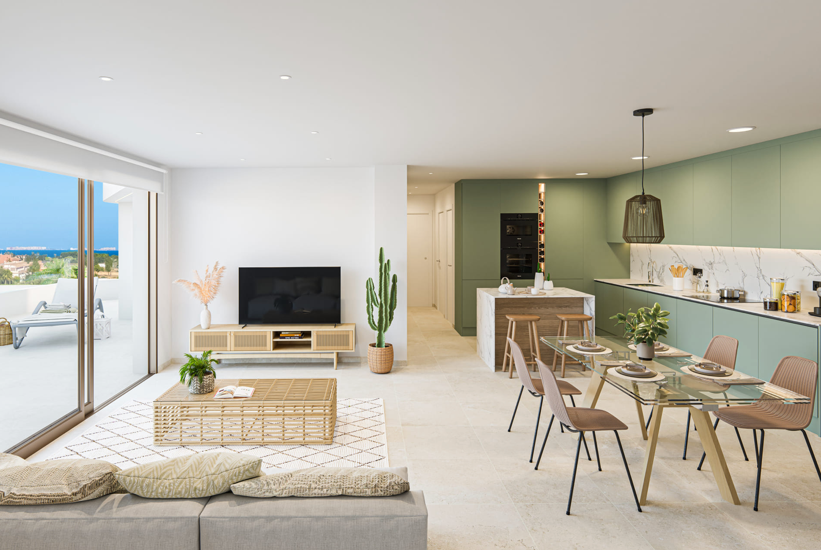De eigenschappen van deze appartementen en penthouses zijn ontworpen om comfort, functionaliteit en stijl te combineren. Elke woning beschikt over een terras, perfect om te genieten van het milde mediterrane klimaat en het indrukwekkende uitzicht op zee.