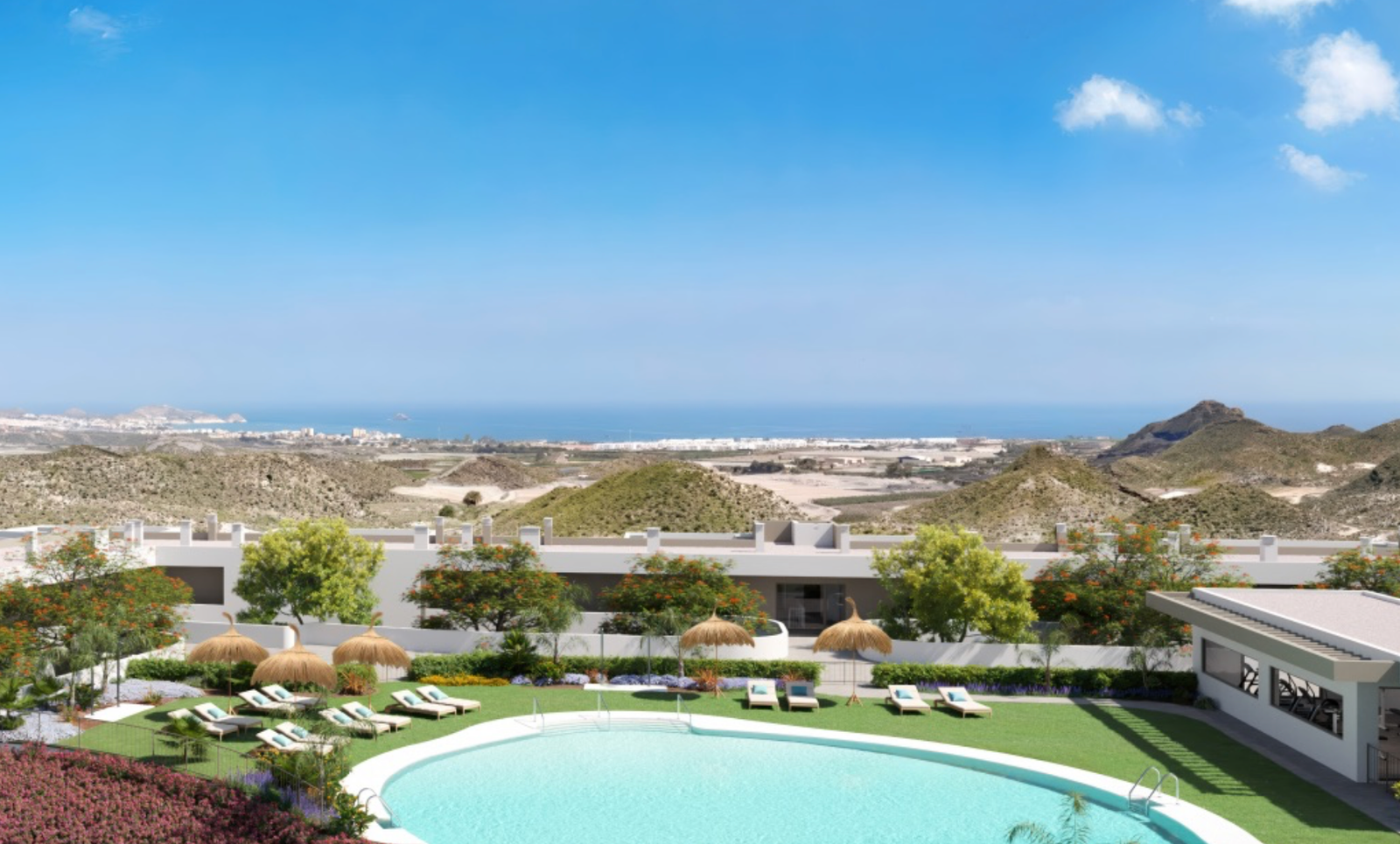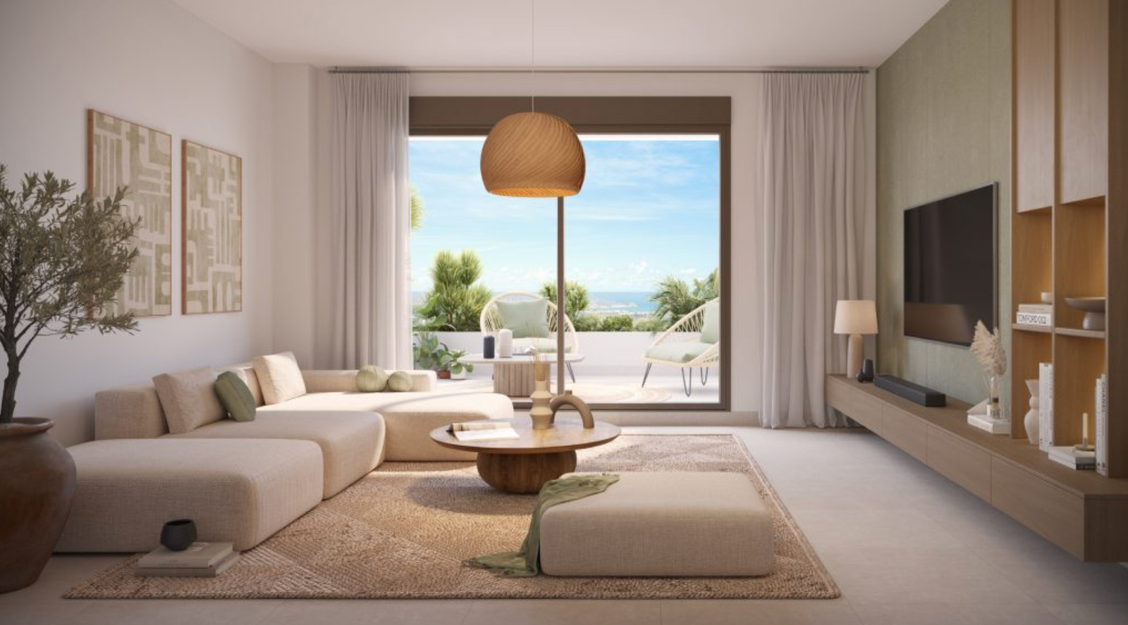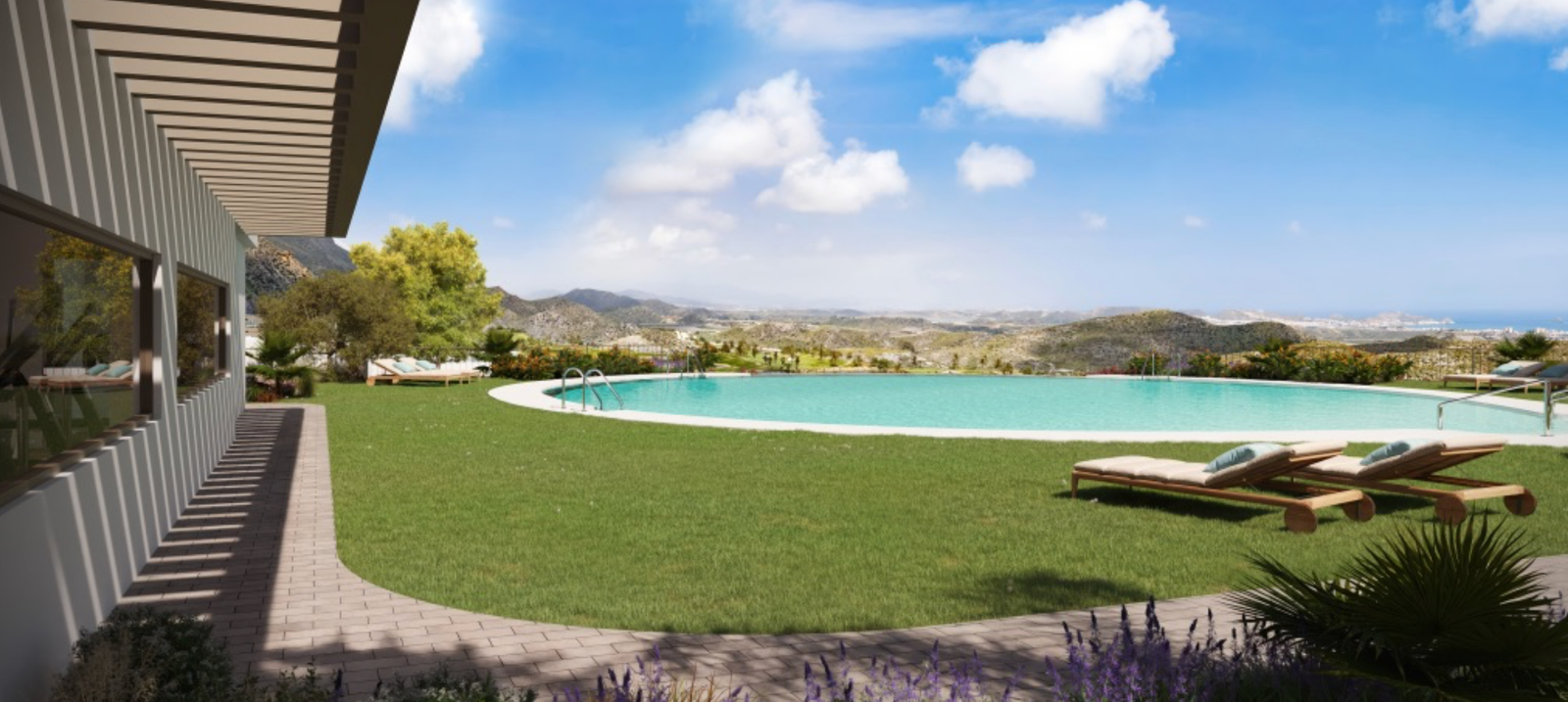 Het exterieur van dit residentieel is ontworpen om de natuurlijke omgeving te complementeren en een uitzonderlijke buitenleefruimte te bieden. Woningen op de begane grond hebben privéterrassen, ideaal om te ontspannen of buitenbijeenkomsten te organiseren. Het uitzicht op zee voegt een speciaal tintje toe, waardoor bewoners kunnen genieten van prachtige zonsopgangen en zonsondergangen. De nabijheid van de zee (slechts 4 km) biedt gemakkelijke toegang tot lokale stranden voor kustwandelingen en wateractiviteiten. De architectuur integreert harmonieus met het landschap, wat bijdraagt aan een serene en gastvrije sfeer en uitnodigt om het mediterrane klimaat het hele jaar door te beleven.