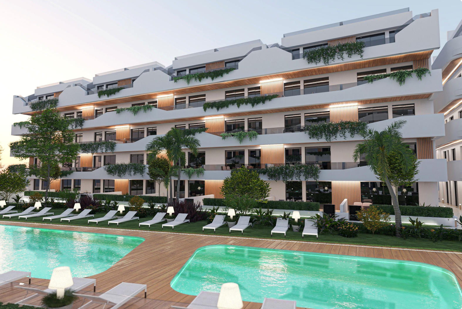 De woningen op de begane grond beschikken over ruime privétuinen, ideaal voor buitenleven, diners in de open lucht of ontspanning in alle privacy. De penthouses zijn uitgerust met royale solariums, waar u kunt genieten van panoramisch uitzicht, maximale zonuren en het aangename Mediterrane klimaat.