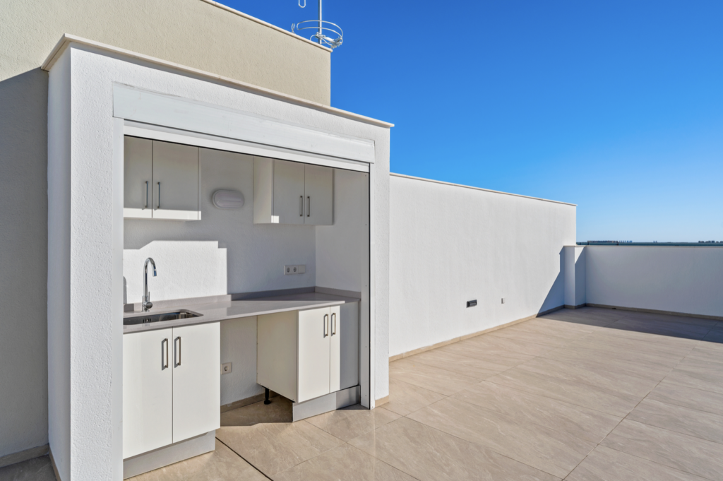 Deze woningen in Los Alcázares beschikken over ruime en zorgvuldig ontworpen buitenruimtes. Elke woning heeft een privé tuin en een royaal terras, perfect om het hele jaar door te genieten van het mediterrane klimaat en het uitzicht op zee. De privé garage biedt extra comfort, veiligheid en directe toegang tot de woning.