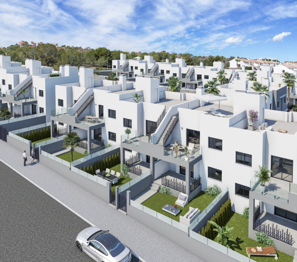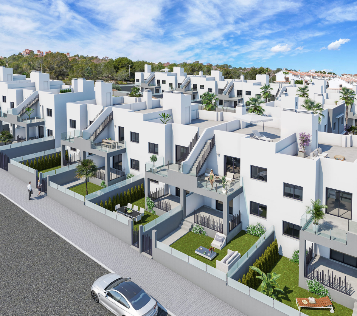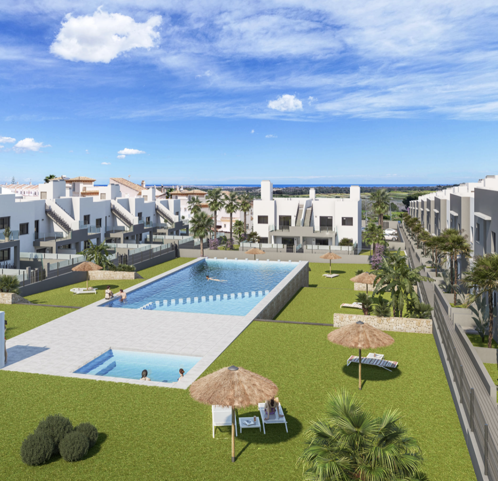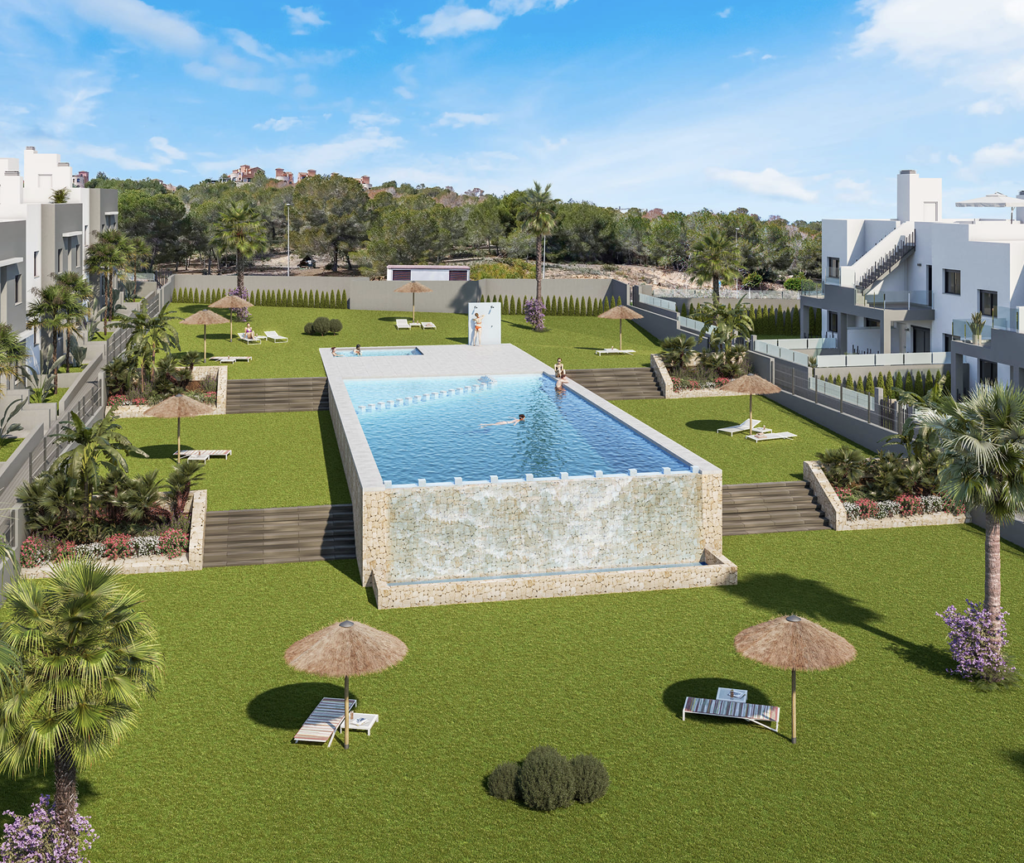 De buitenruimtes van deze woningen zijn ontworpen om optimaal te genieten van het mediterrane klimaat. Elke bungalow beschikt over een privétuin, ideaal voor ontspanning of buitenactiviteiten, en een terras om te dineren of te genieten van het zeezicht. Bovendien biedt het privé solarium extra ruimte om in volledige privacy van de zon te genieten en te genieten van het panoramische uitzicht.